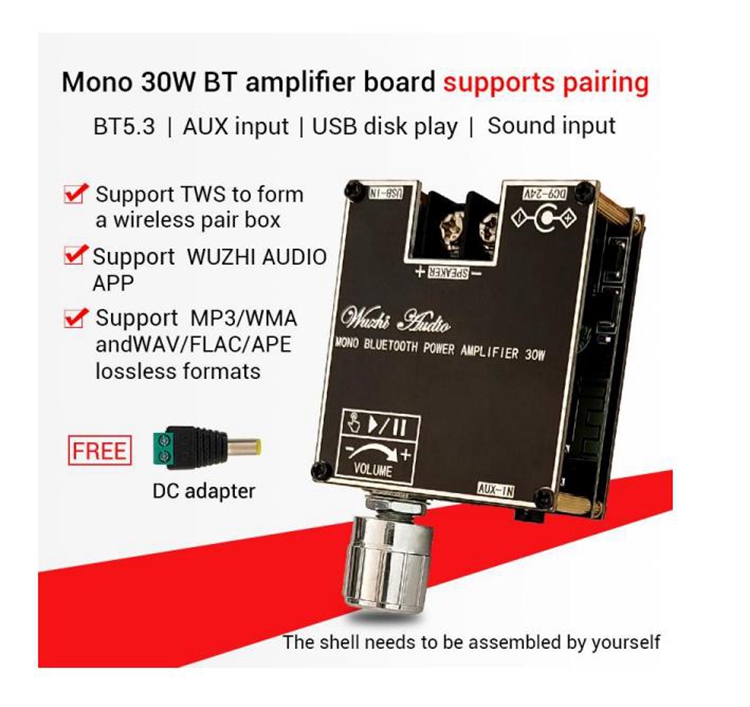 ZK-301B Mono 30W Bluetooth5.3 Power Amplifier Board DC9-24V Support TWS True Wireless Stereo