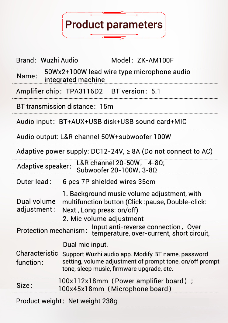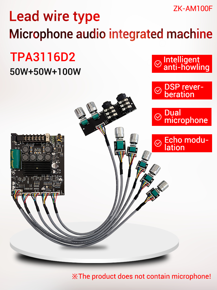 ZK-AM100F 50W+50W+100W Bluetooth Amplifier Board TPA3116D2 Power Amp Board for Microphone & Speakers