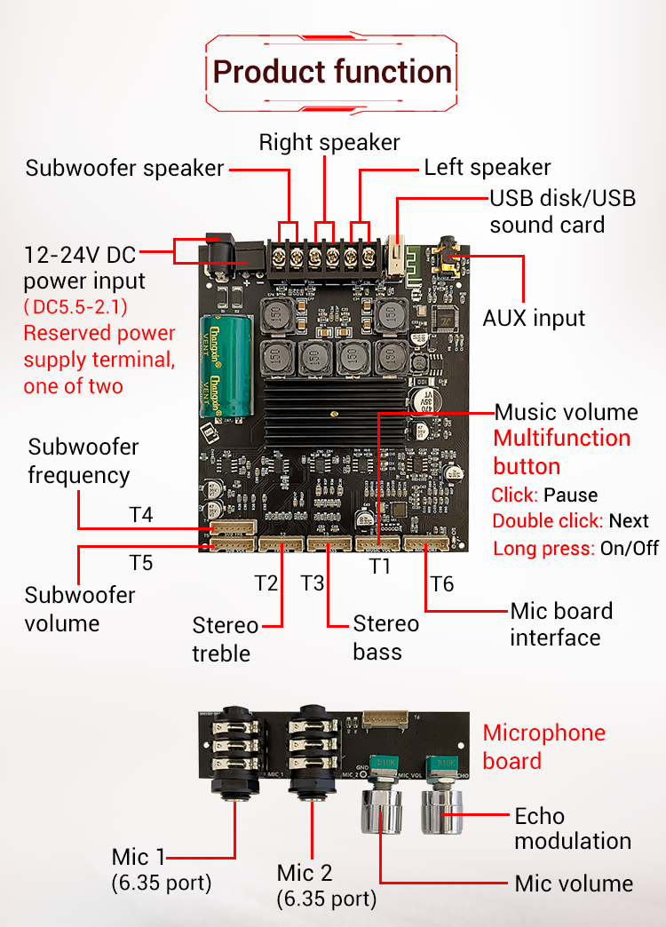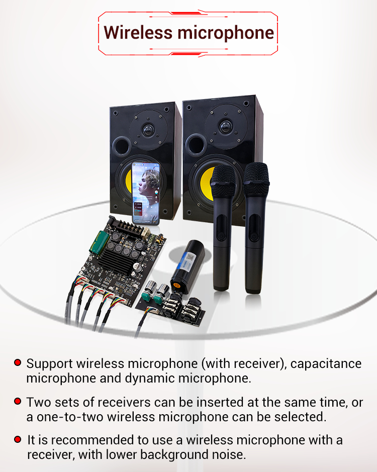 - Microphone is not included. Please prepare by yourself. Wireless mic with receiver is highly recommended.