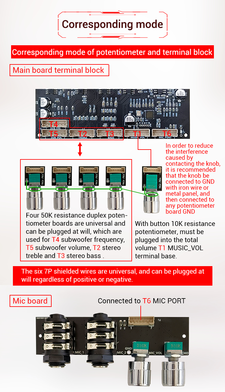 - 4pcs 50KΩ potentiometers need to be separated before using.