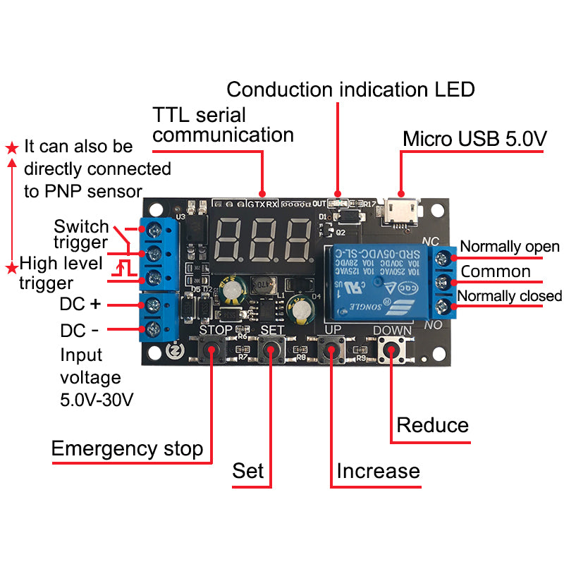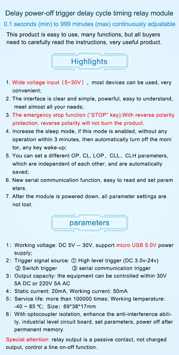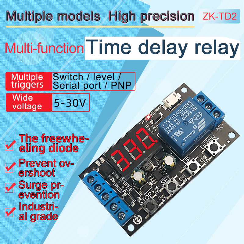 ZK-TD2 Time Delay Relay Module 5V12V24V Compatible Trigger Cycle Timing Industrial Against Overshoot