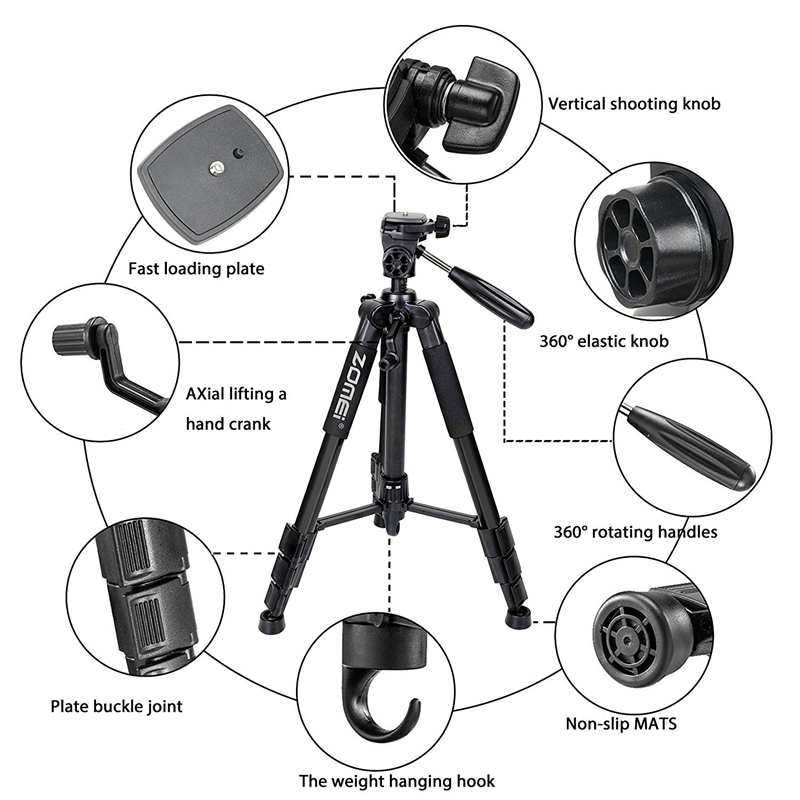 Zomei Q111 Black Camera Tripod Aluminum Alloy For SLR DSLR Live Broadcast Video Wildlife Photography
