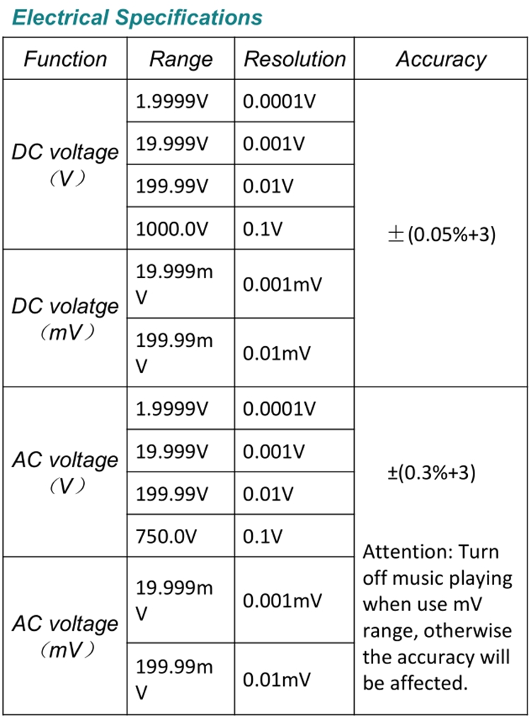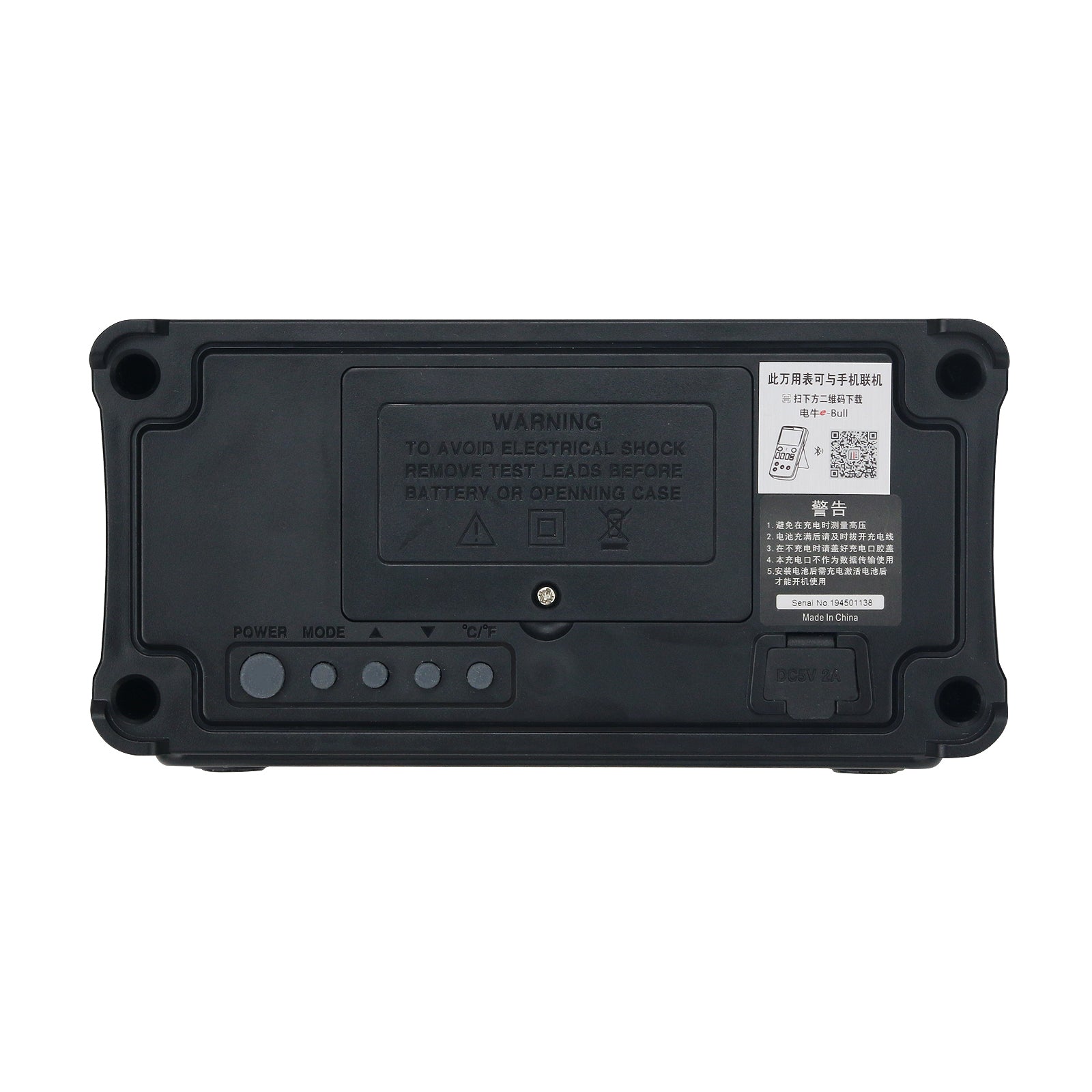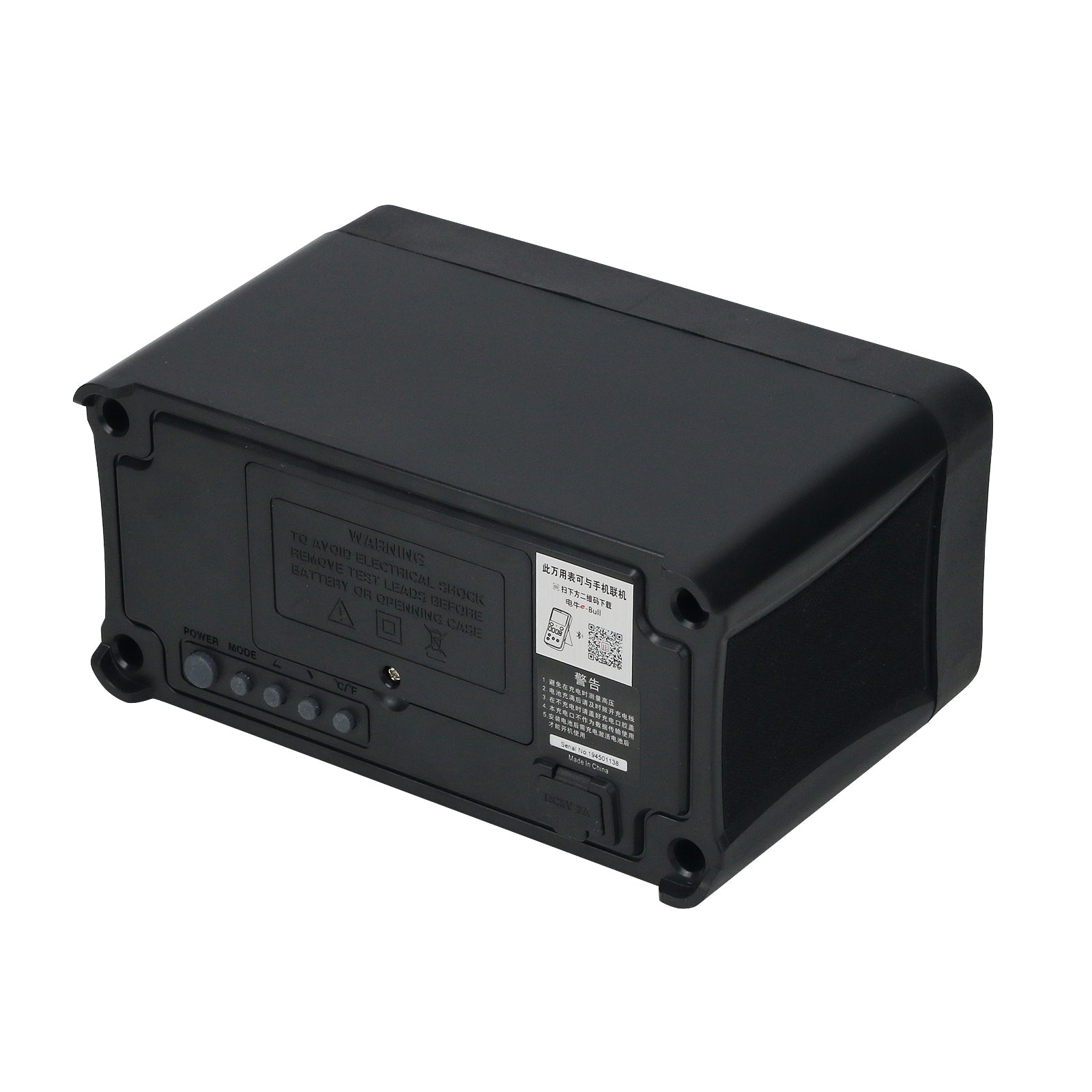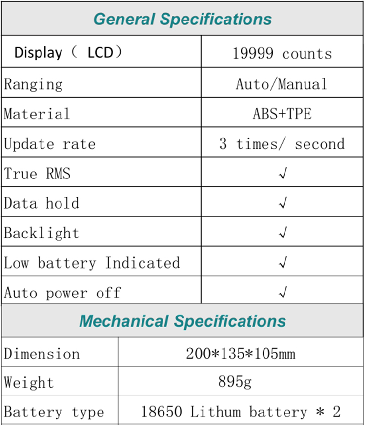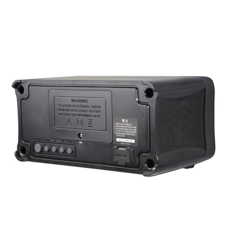 This product is a lithium battery-powered, true RMS, automatic-range multi-function digital multimeter with 19999 counts, LCD display and adjustable backlight brightness. It is equipped with clock, alarm clock, Bluetooth to play music, and temperature display.