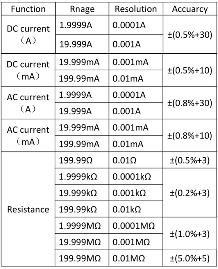 - Data hold / maximum and minimum value hold / relative value measurement / manual ranging