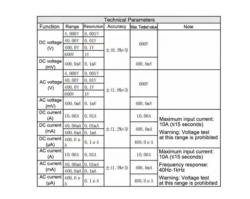 - Measure AC & DC voltage / NCV / capacitance / temperature / continuity / diode / resistance