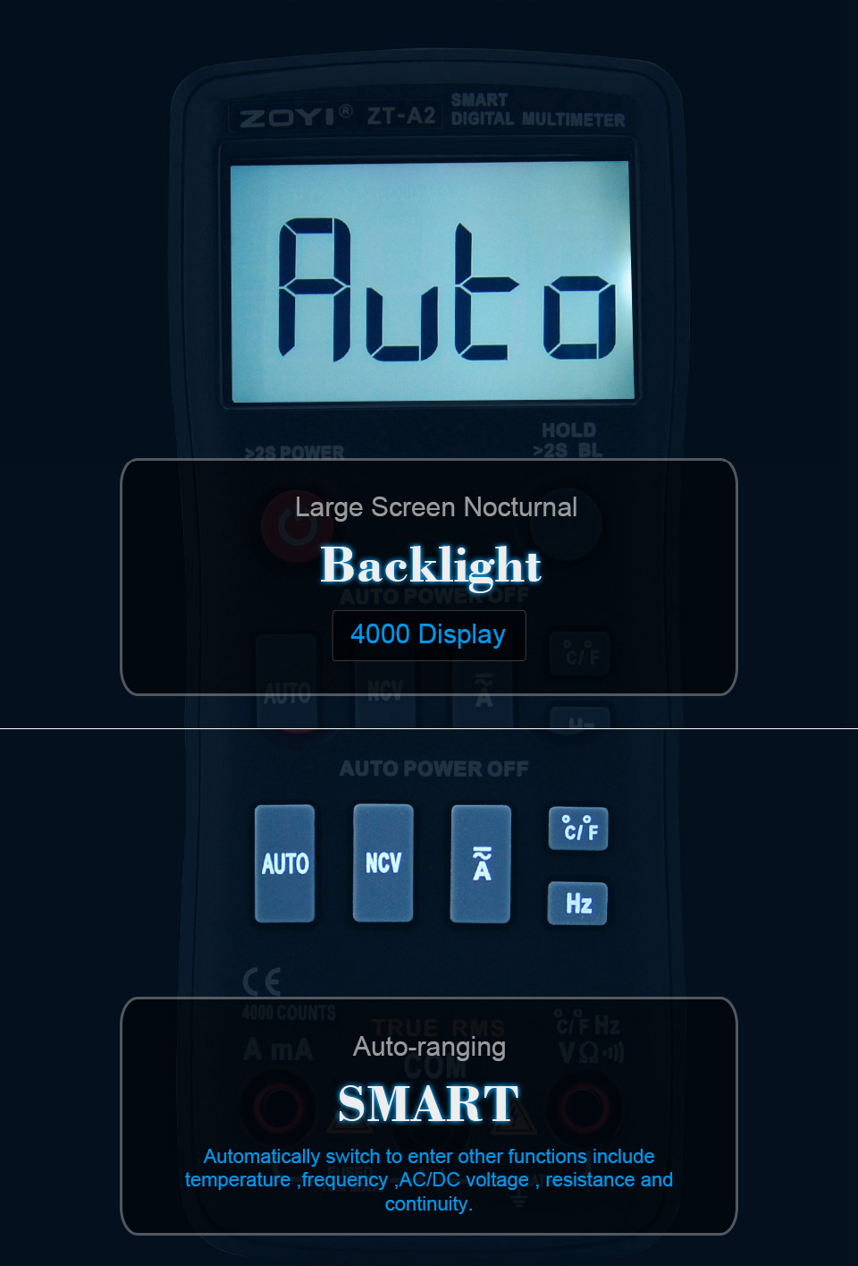 ZOYI ZT-A2 Automatic Ranging Smart Digital Multimeter Tester 4000 Counts High-Precision NCV Tester