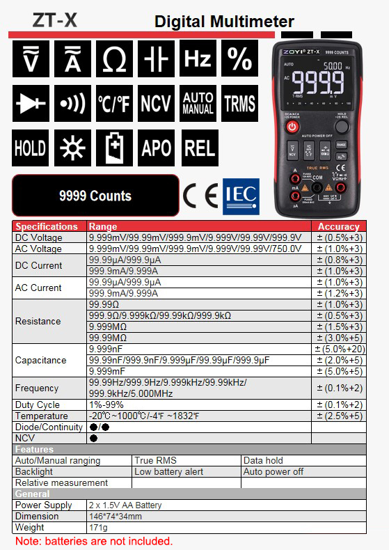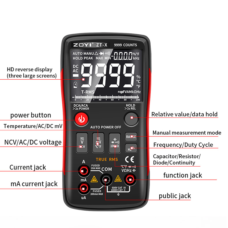 ZOYI ZT-X Digital Multimeter Autoranging Multimeter Tester 9999 Counts NCV Tester Standard Version