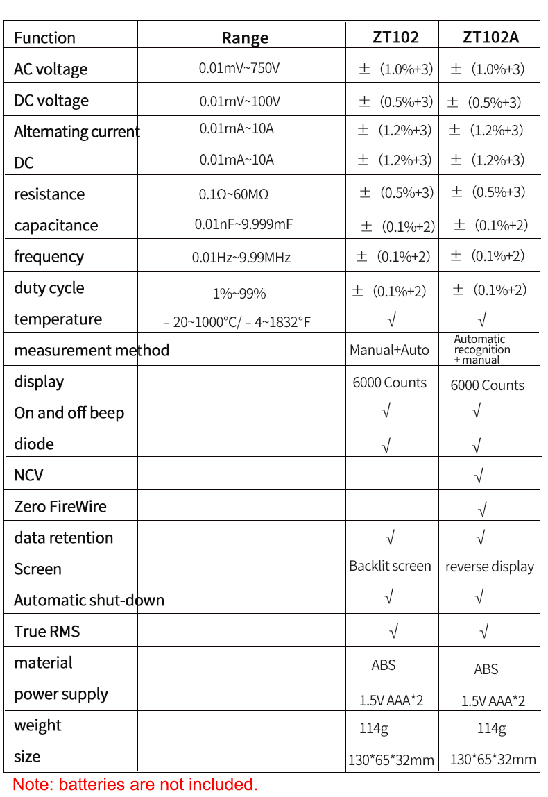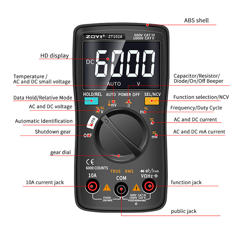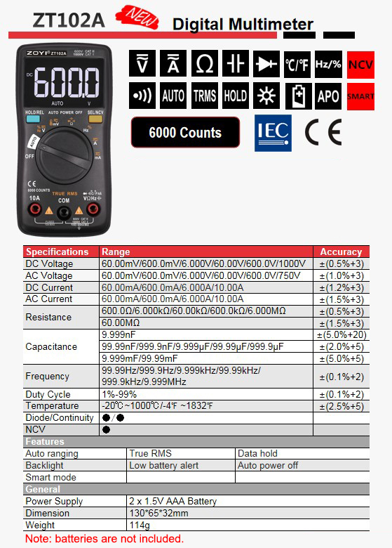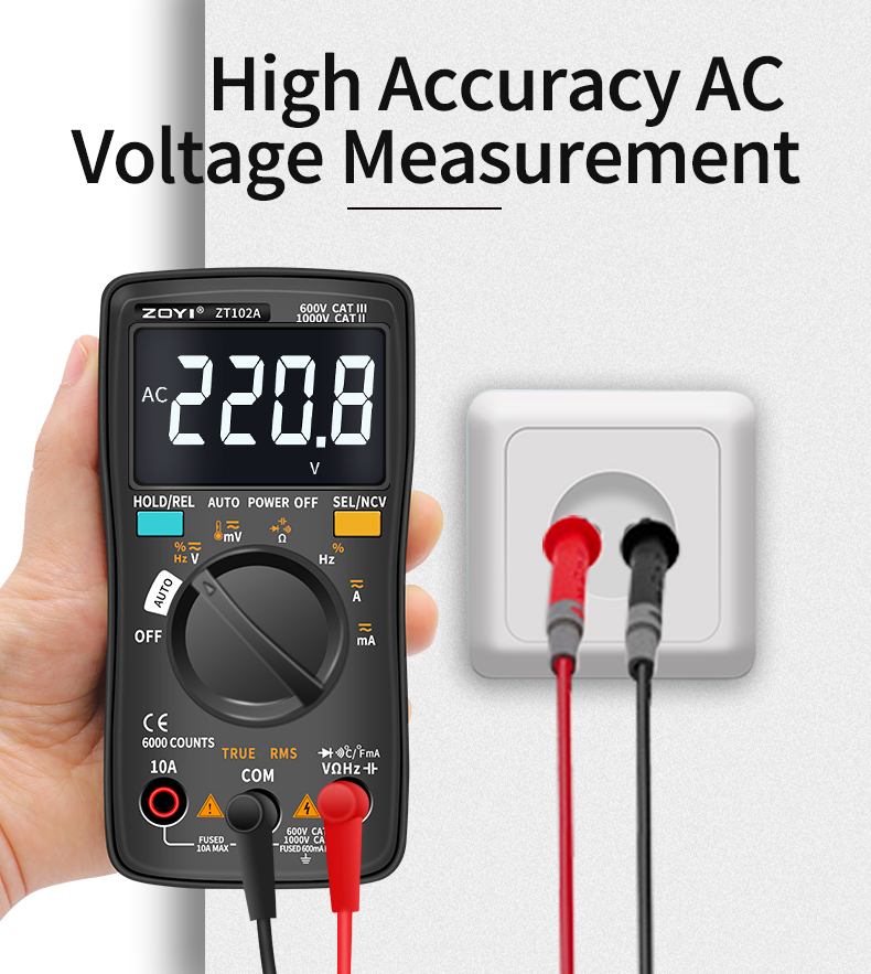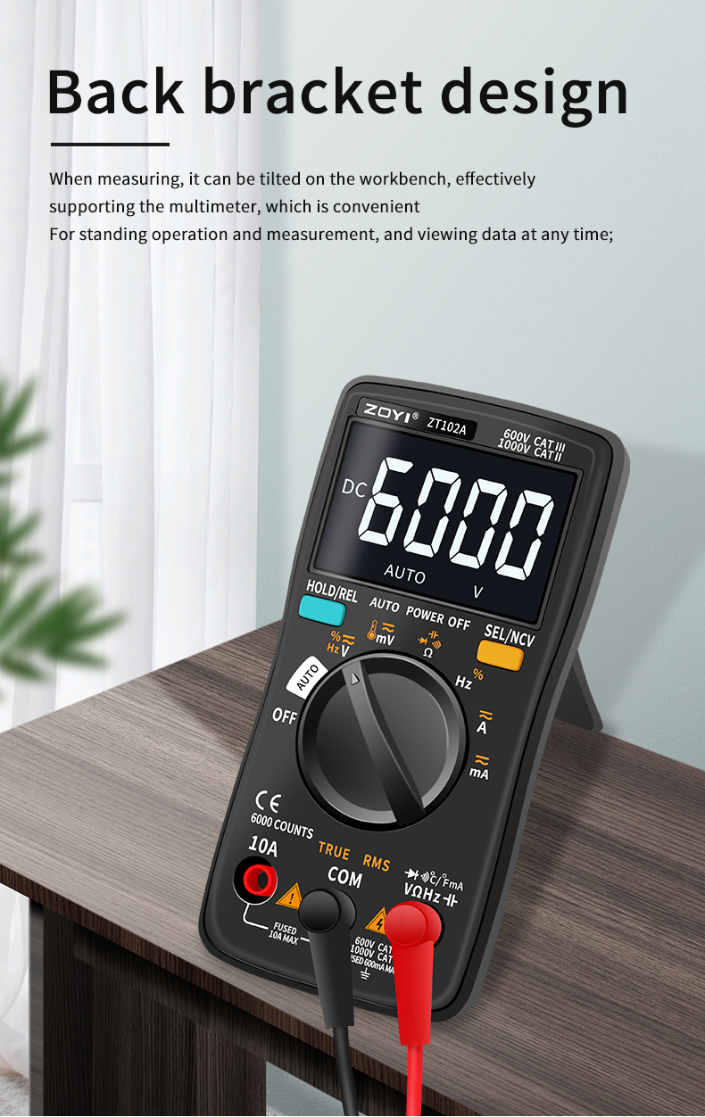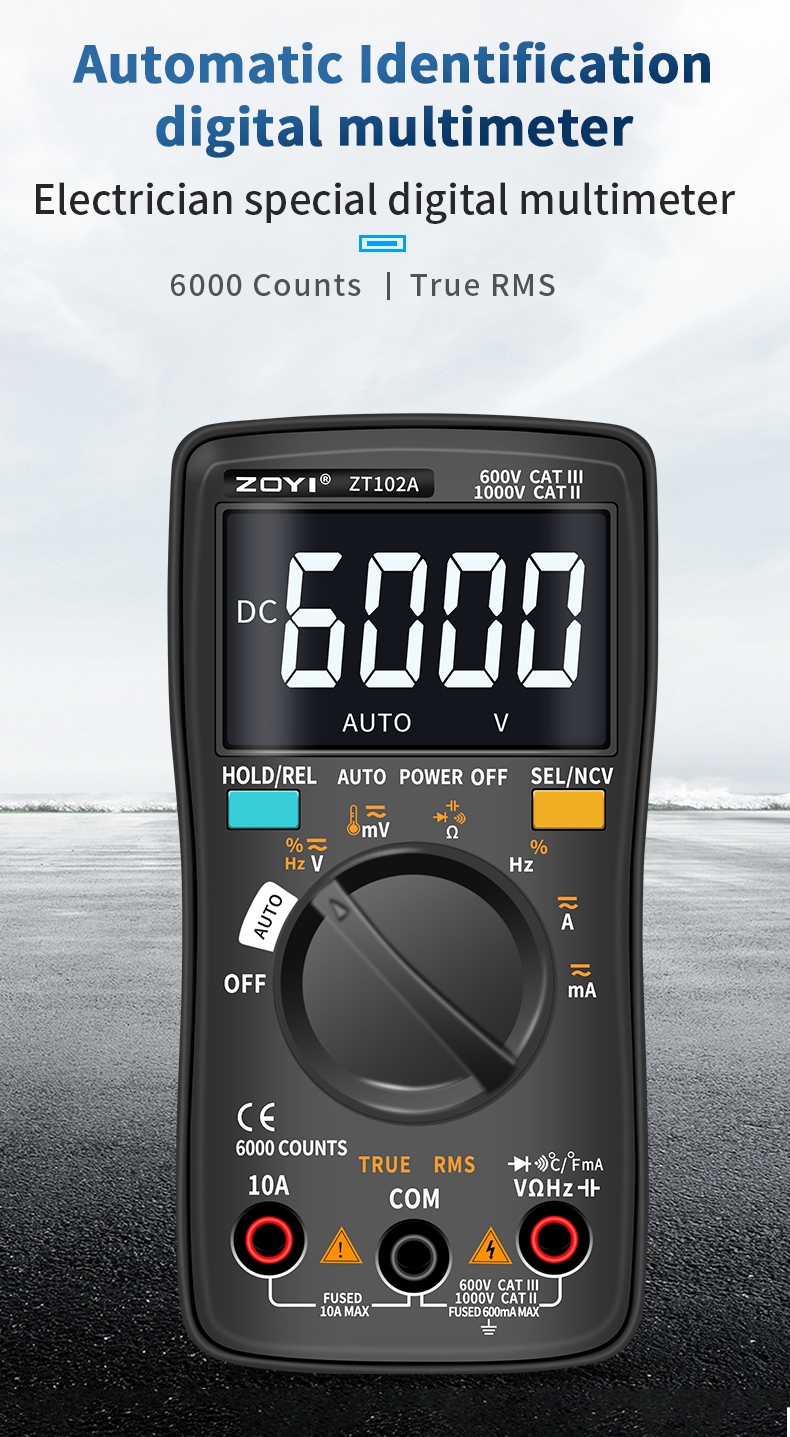 ZOYI ZT102A Autoranging Digital Multimeter 600V CAT III & 1000V CAT II Automatic & Manual Modes