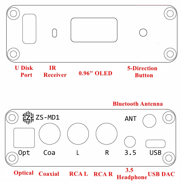 ZS-MD1 HiFi DSD Digital Player CSR8675 Bluetooth 5.0 DAC Support 384K 32Bit DSD256 (Dual CS43198)