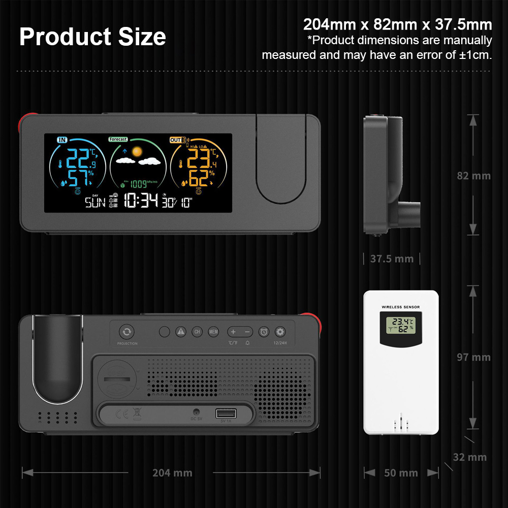 ZX3538 Projection Clock Weather Station with Time and Temperature Projection & Dual Alarm Clocks