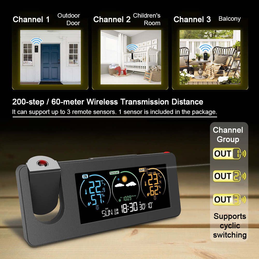 * Wireless outdoor sensor: 433.92MHz RF transmission frequency. Transmission range up to 60 meters in open areas. The weather station supports up to 3 wireless sensors (1 sensor included in the package)