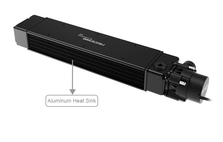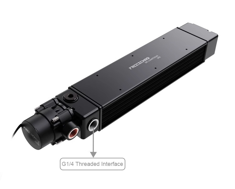 FREEZEMOD 200ml Compact Liquid Cooling Module with Pump – SR-LH65T3X40-290 (12V, Top Water Outlet)