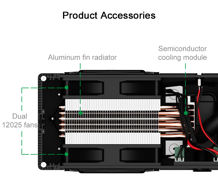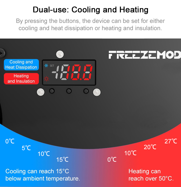 * Cooling and Heating: By pressing the buttons, the device can be set for either cooling and heat dissipation or heating and insulation. Cooling can reach 15°C below ambient temperature. And heating can reach over 50°C.