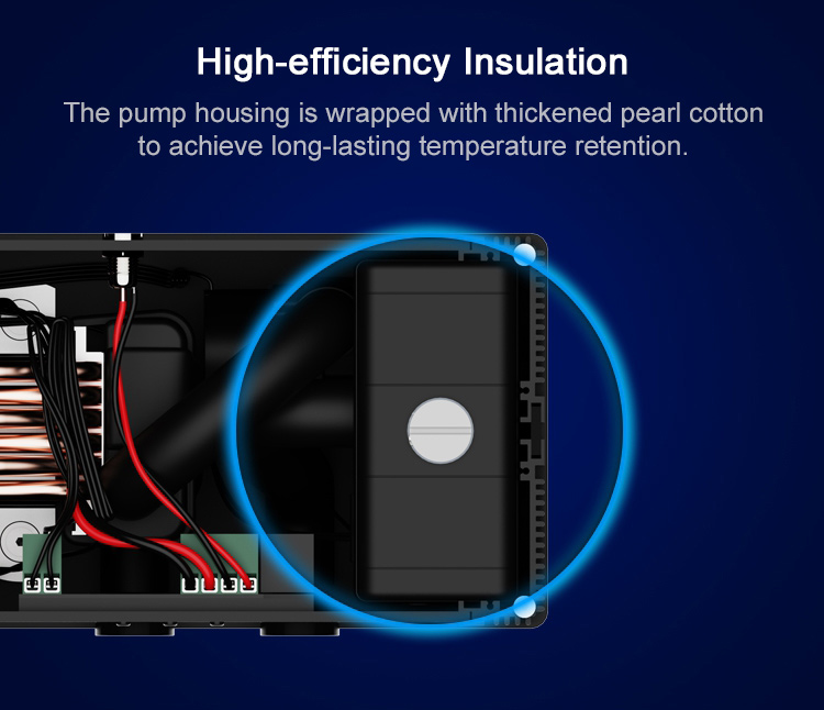 * High-efficiency Insulation: The pump housing is wrapped with thickened pearl cotton to achieve long-lasting temperature retention.