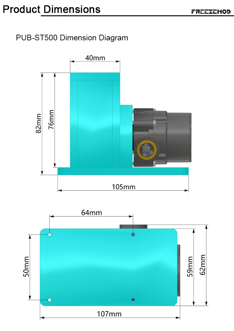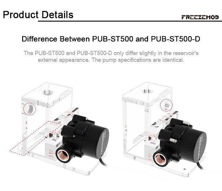 FREEZEMOD Industrial Instrument Liquid Cooling Circulation Pump PUB-ST500 (12V, Top Water Outlet)