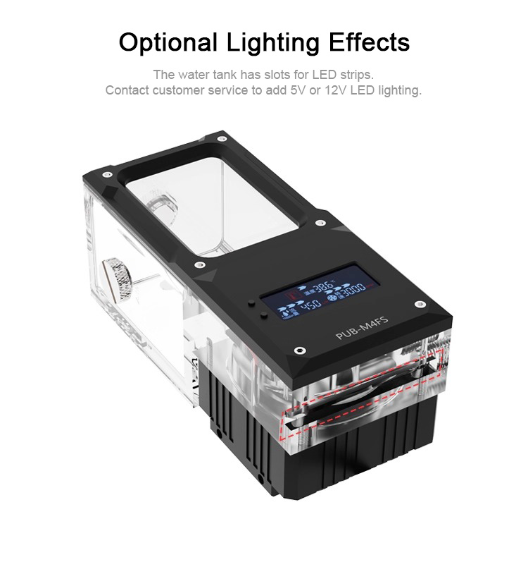 * The water tank has slots for LED strips. Contact customer service to add 5V or 12V LED lighting.