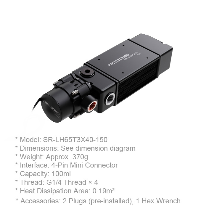 FREEZEMOD SR-LH65T3X40-150 (12V) 100ML All-in-One Mini Liquid Cooling Module Radiator Pump Combo