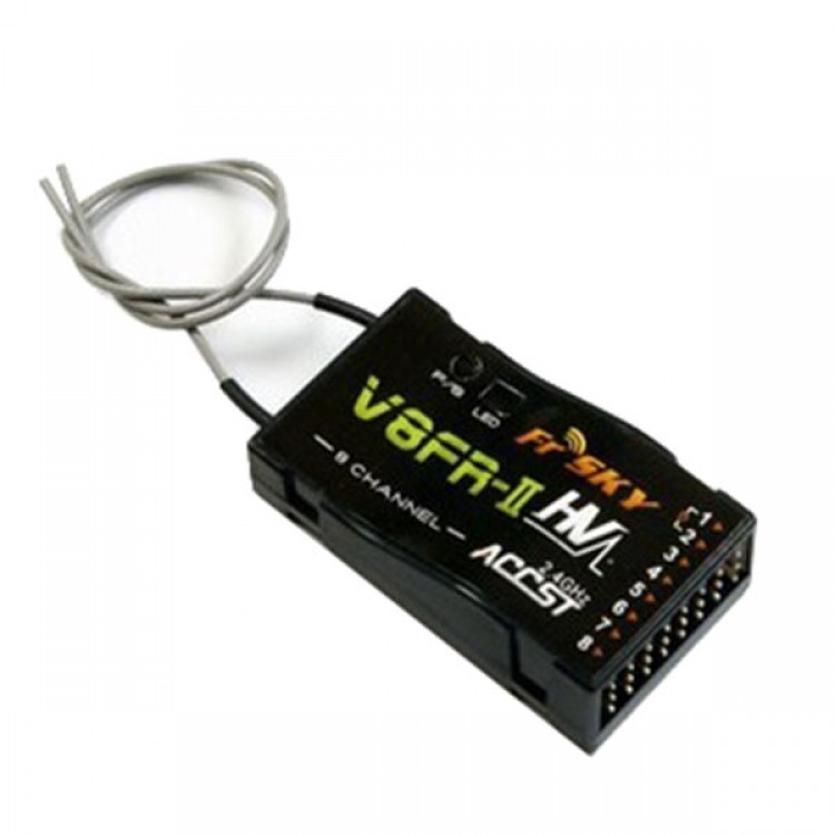 - Frsky 2.4G 8/V8FR-II HV channel high voltage receiver is only compatible with the high frequency head produced in FrSky industry, can not directly use high frequency head of FUTABA or JR to match code between receiver and transmitter. Please install your system according to the following steps: