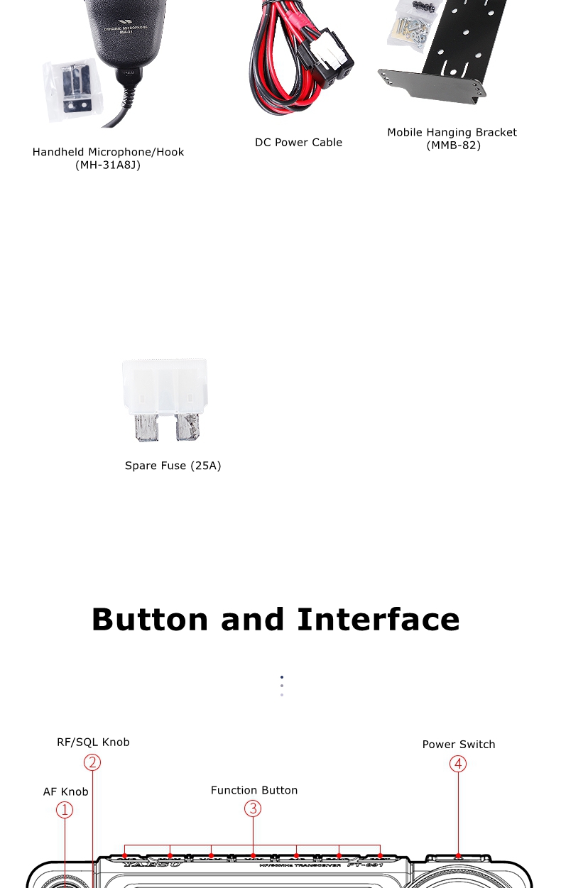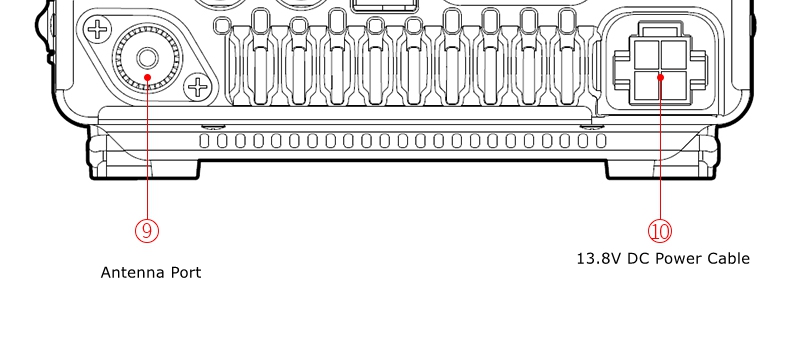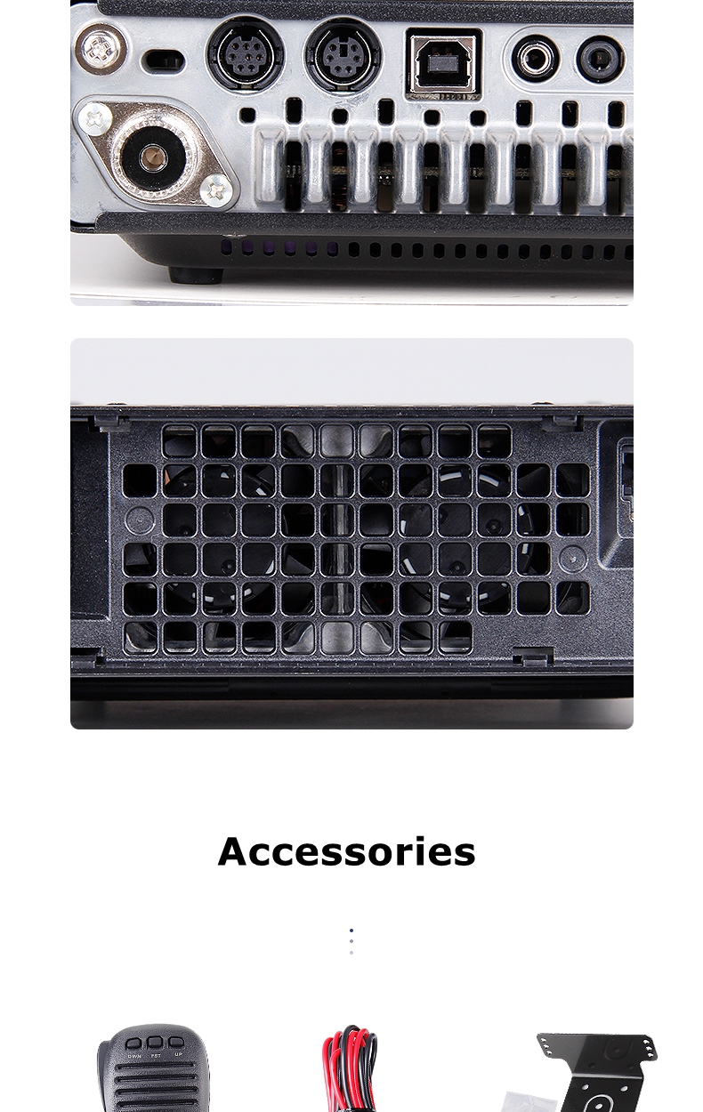 - Transmitting power: 100W (SSB/CW/FM); 40W (AM carrier wave)