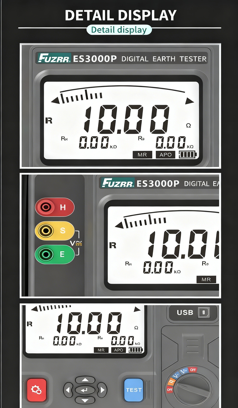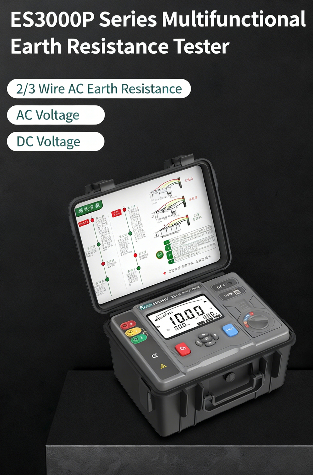 FUZRR ES3000P Multifunctional Micro-controller 3-Wire Ground Resistance Tester 0-20Kohms High Precision Earth Resistance Tester
