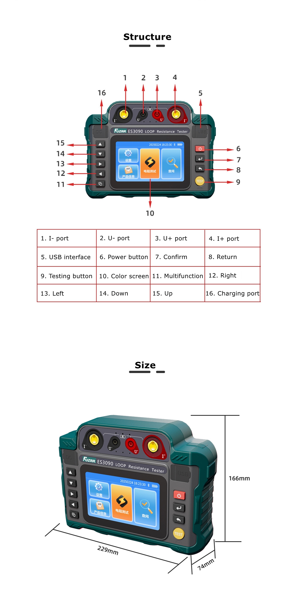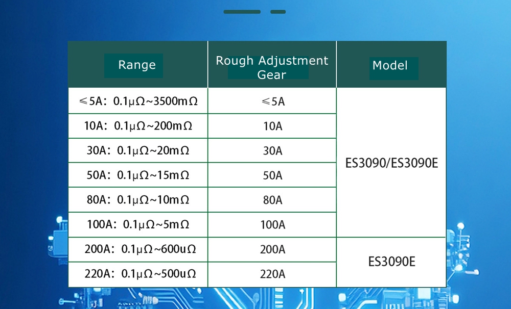- Maximum testing current: 100A for ES3090; 220A for ES3090E