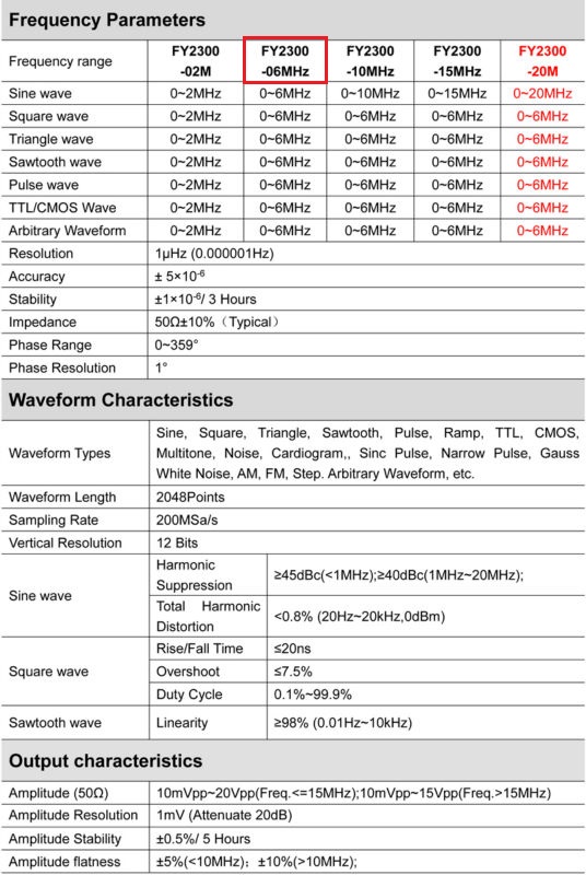 FY2300 series Dual Channel Function/Arbitrary Waveform Generator is a multifunctional signal generator product integrating Function Signal Generator, Arbitrary Waveform Generator, Pulse Signal Generator, Noise Signal Generator, Counter and Frequency Meter with excellent cost performance. This instrument adopts large scale CMOS integrated circuit and high speed MCU microprocessor. The internal circuit uses SPXO as the basic standard to guarantee the stability of signals. Surface mounting technology improves interference immunity and operational life span.