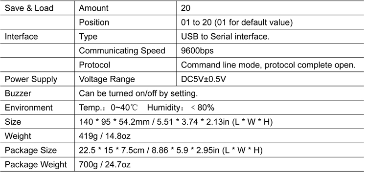 - Save function: It can save 20 sets user-set parameters and can be loaded at anytime.