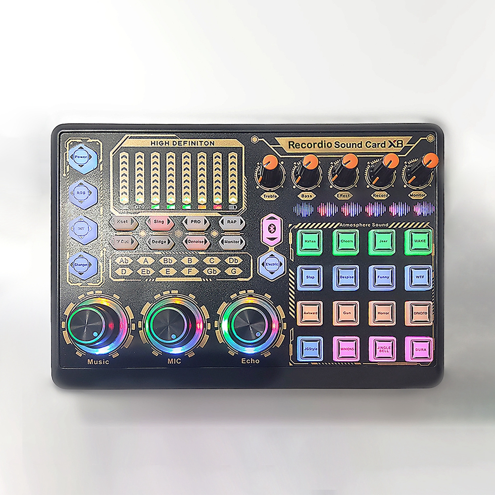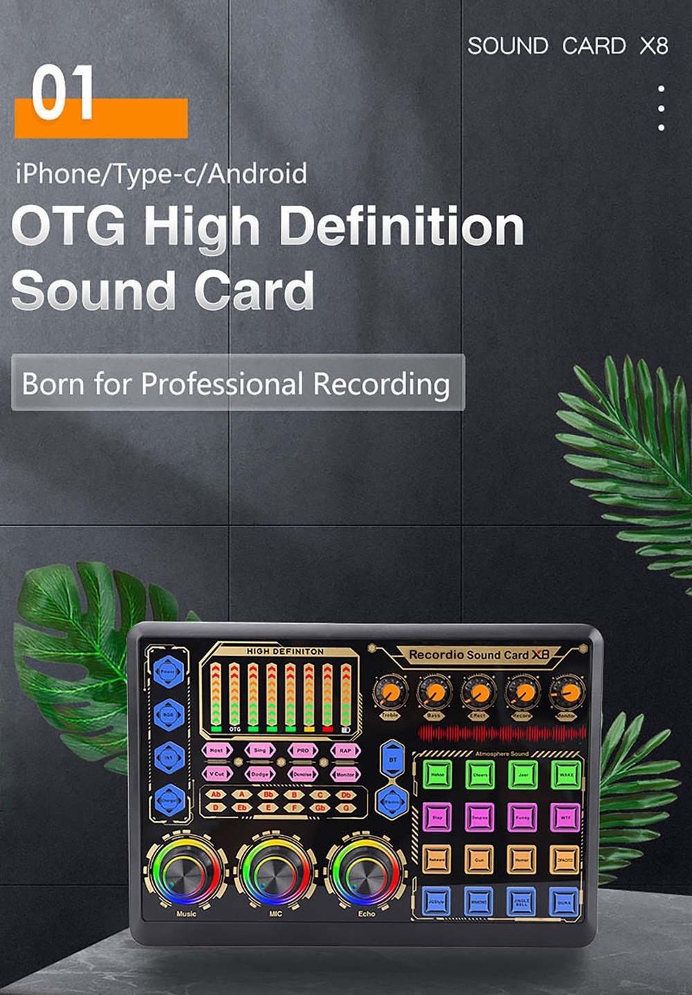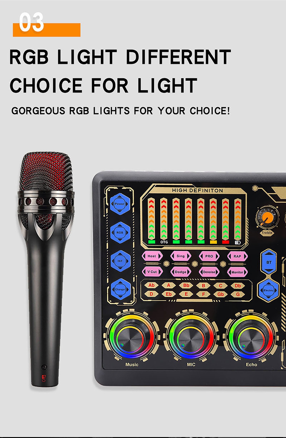 GAX-X8P 48V Digital Live Broadcasting USB Sound Card High Definition Sound Card with RGB Lights