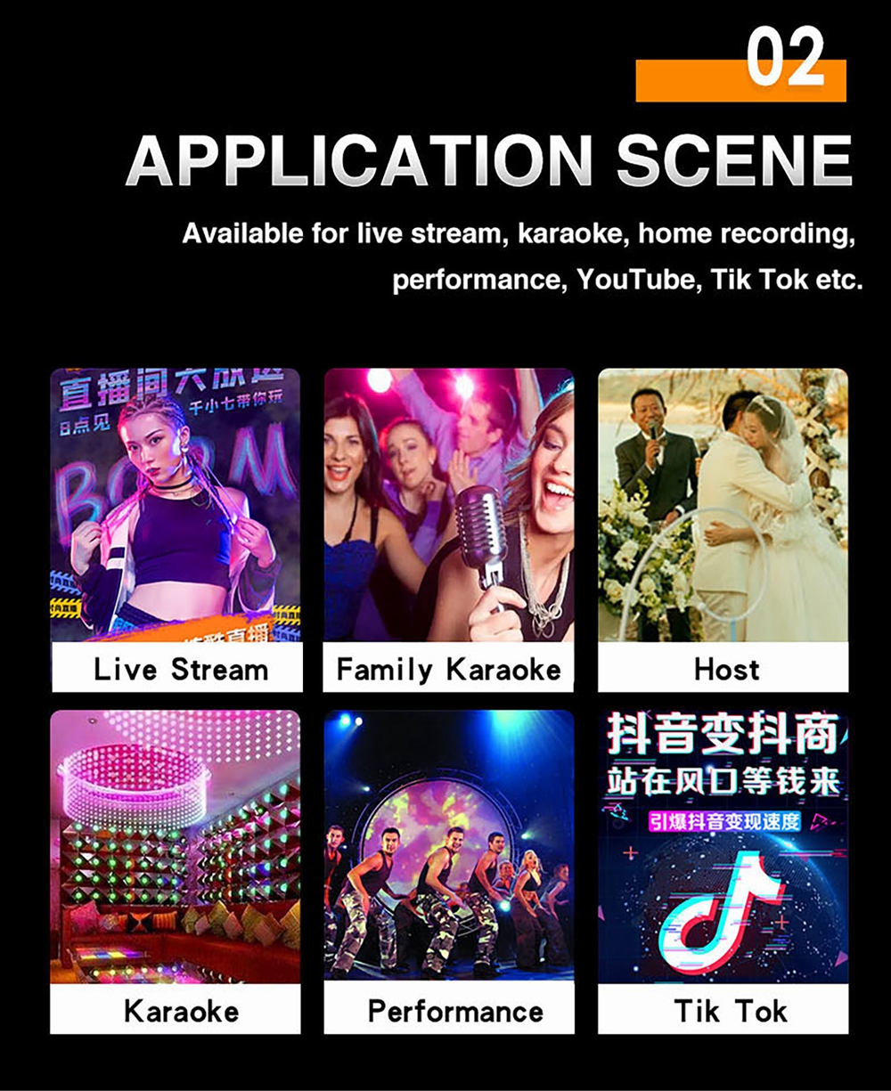 - Application: Home, KTV, Performance, Conference, Speech, Interview, Recording