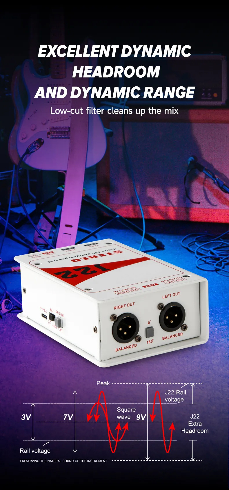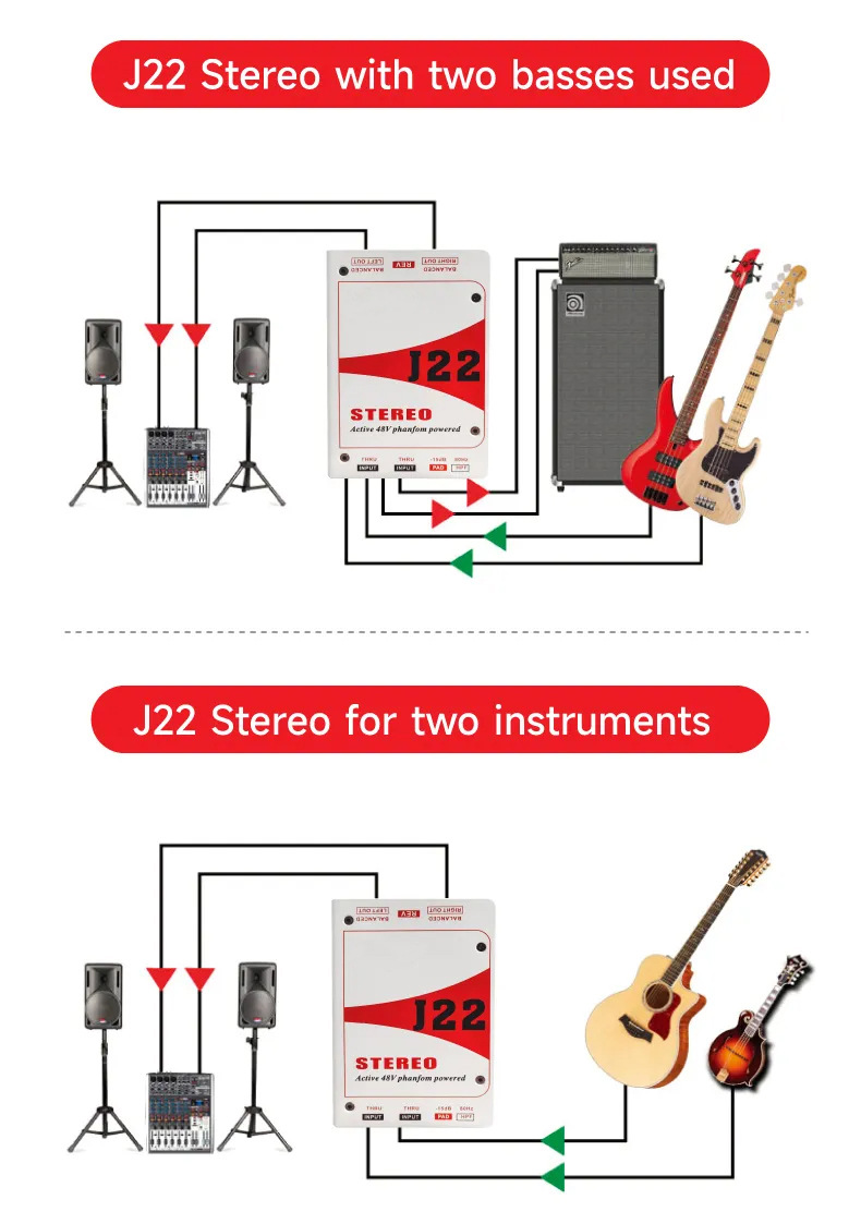 GAZ-J22 Professional Dual Channel Stereo 48V Phantom Power Supply Active Connection Audio DI Box