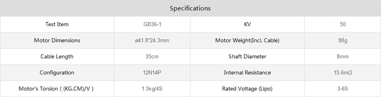 GB36-1 Brushless Gimbal Motor 3-6S KV50 Torsion 1.5kg/4S