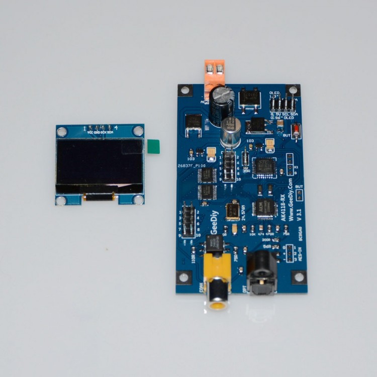 GeeDiy AK4118 Digital Receiver Board Coaxial Optical AES I2S/DSD Inputs AK4118-RX with 1.3" OLED