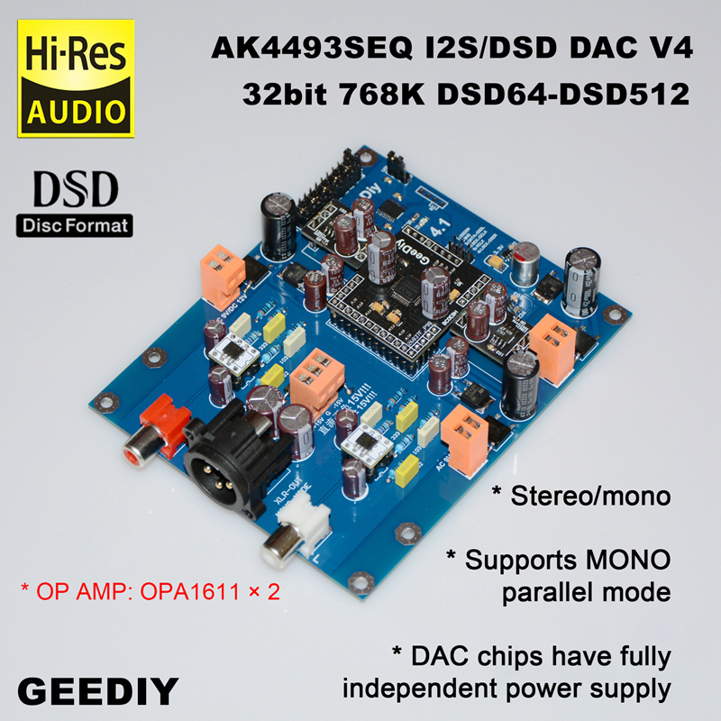 GeeDiy AK4493SEQ I2S/DSD DAC Board V4 Decoder Board (Semi-Finished Kit) 32bit 768KHz DSD64-DSD512