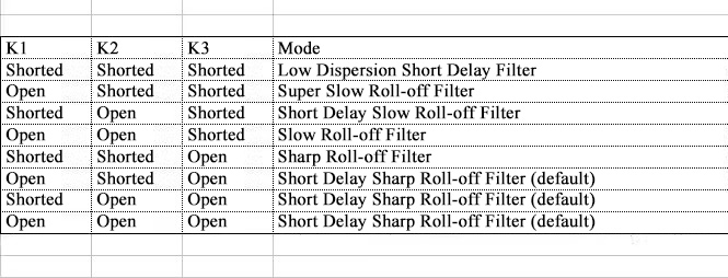 * K6 Shorted → Volumio Bypass mode; in DSD mode, volume cannot be controlled, but DSD filter can still be adjusted.