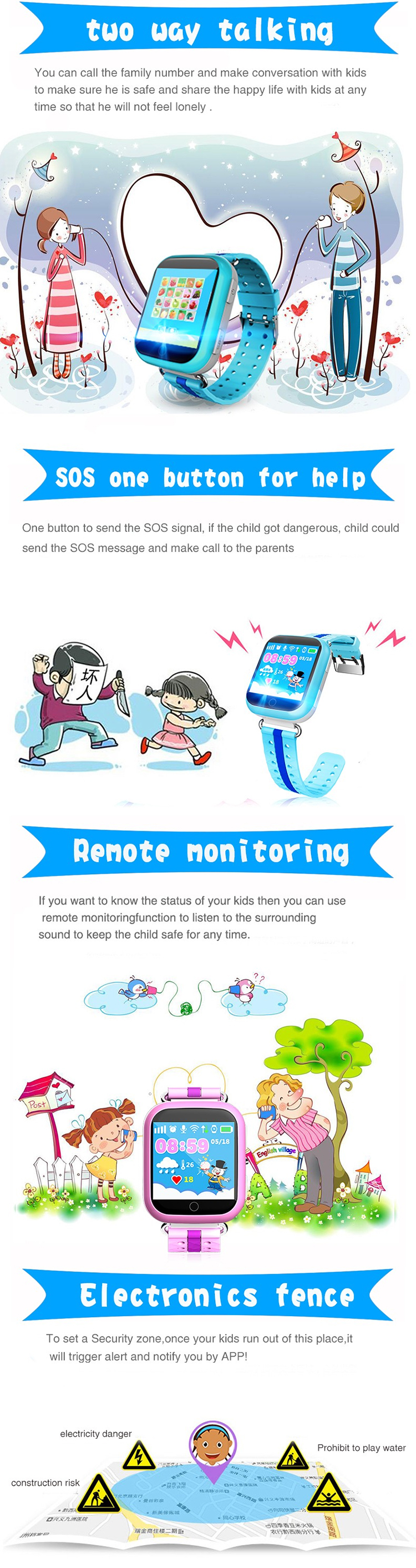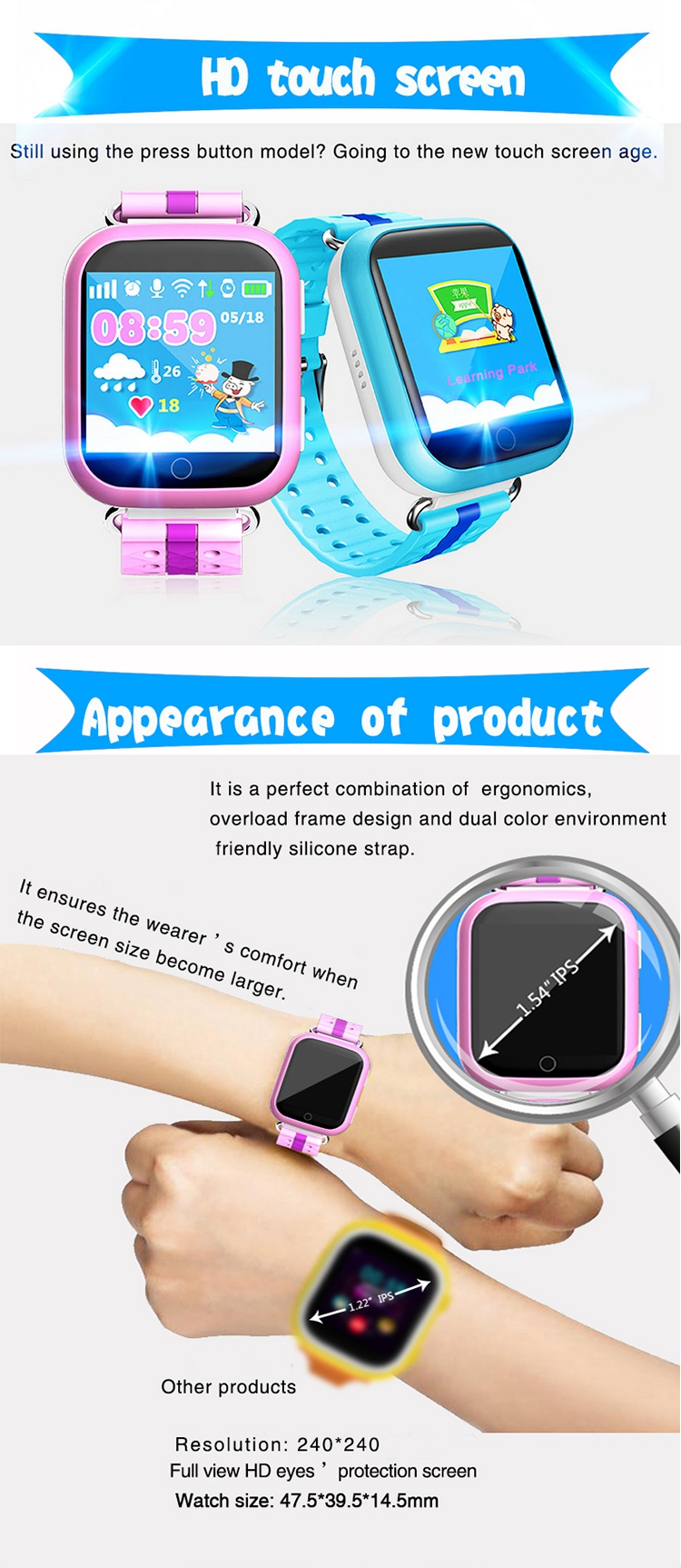 GPS Smart Watch for Kids Q10 with 1.54Inch Touch Screen SOS Call Location Device Tracker