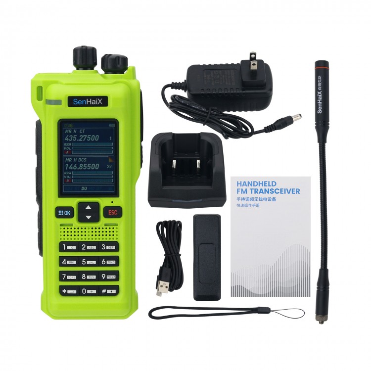 Grass Green GT-12 10W Multi-band Handheld Walkie Talkie 2-Inch LED Color Screen Built-in Bluetooth Support FM/AM/UHF/VHF