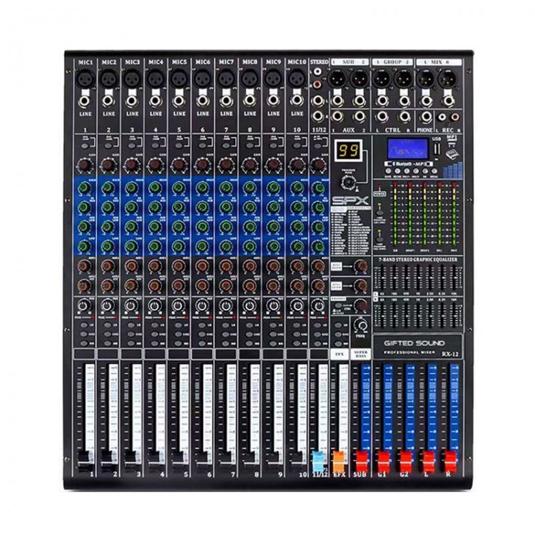 GS RX12 Professional Performance-grade 12-Channel Bluetooth5.0 USB Stage Audio Mixer DSP 99 Digital Effector