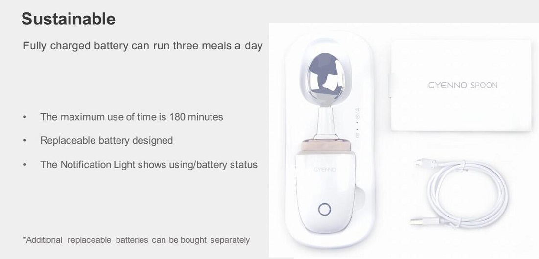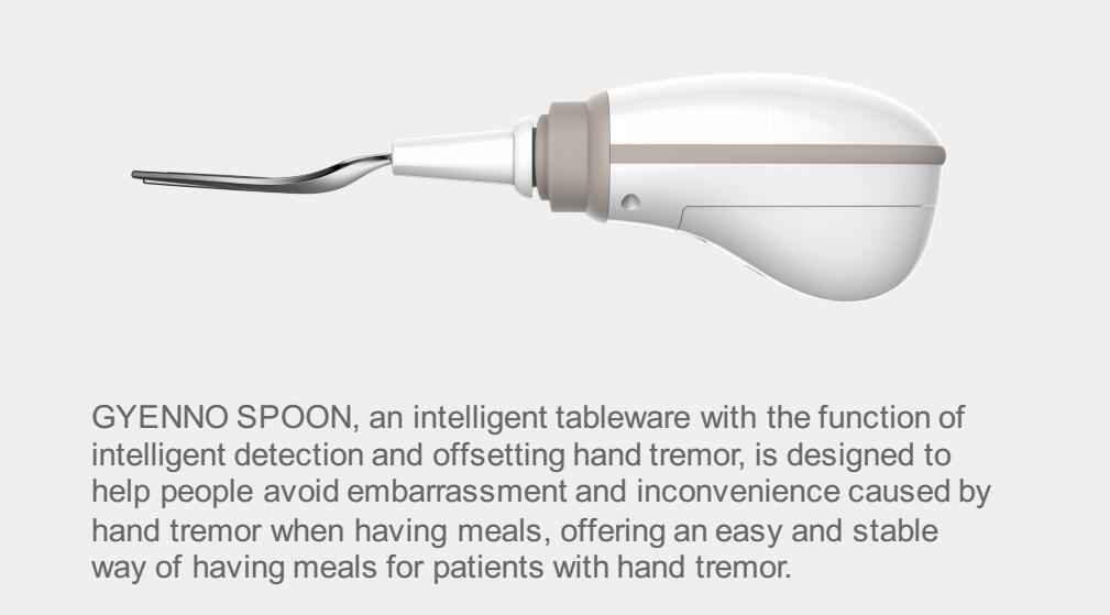 - GYENNO SPOON, an intelligent tableware designed for patients with hand tremor, helps users eat more conveniently and enhances their confidence. GYENNO SPOON can offset 85% hand tremor effectively and stabilize the SPOON with intelligent robot technology.