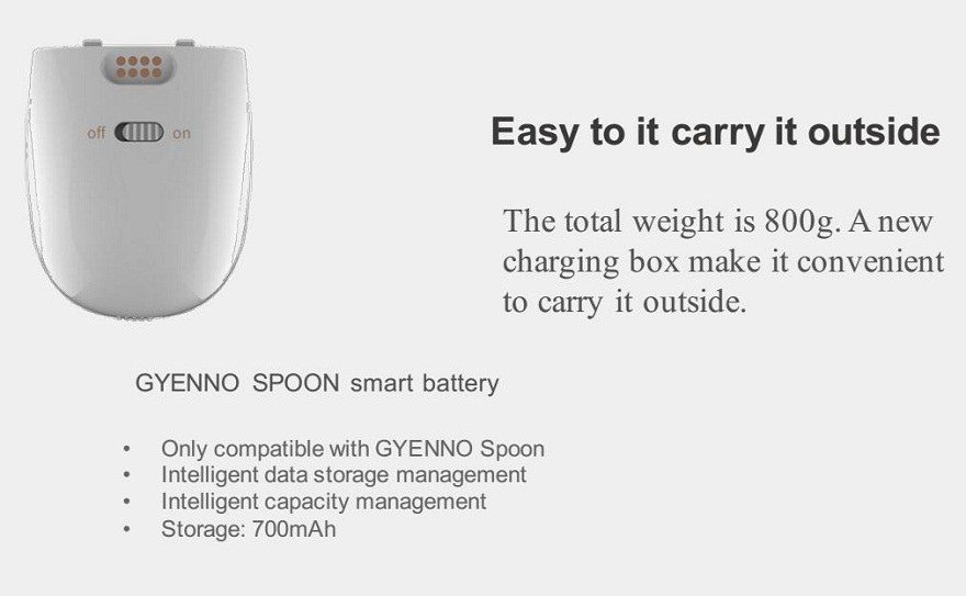 Different between GYENNO SPOON Lite and GYENNO SPOON: GYENNO SPOON Lite has the same functions and hardware with GYENNO SPOON, but the charging box is much lighter, easier to carry.