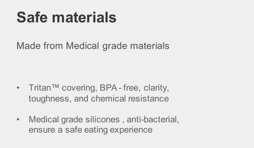 - SAFE MATERIALS: Made from Medical grade materials, Mediacal grade silicones, anti-bacterial ensure a safe eating experience.