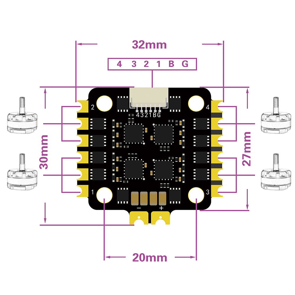 - Supported communication mode: DShot150/300/600 PWM Oneshot125, Oneshot42 and Multshot