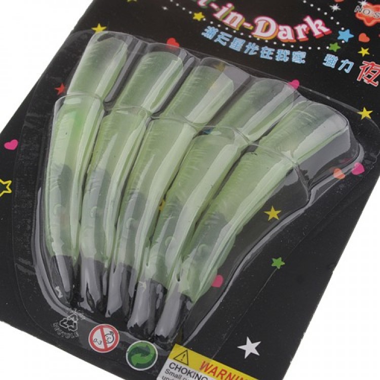 Halloween 10 Black Witch Ghost Fingers Nails Light-in-dark Fancy Dress Party Accessory