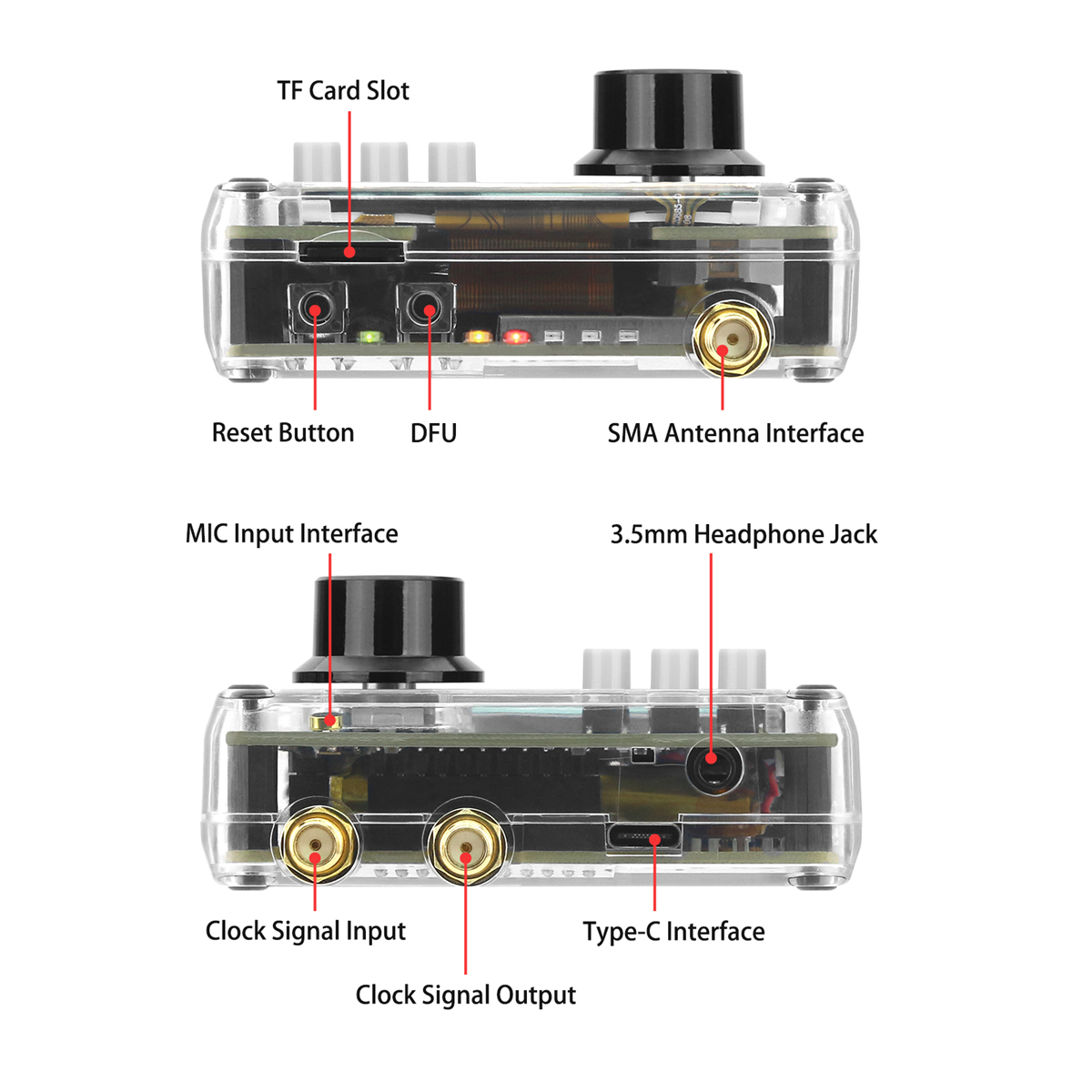 * SMA female clock input and output for synchronization