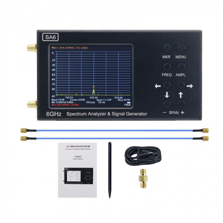 HAMGEEK SA6-V2 35-6200MHz Spectrum Analyzer & Signal Generator Designed with 3.2-Inch Colour Screen