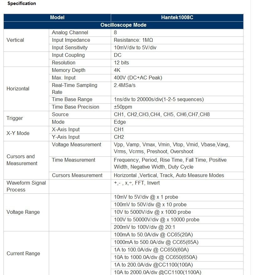 Hantek1008B 8 CH Automotive Diagnostic Oscilloscope DAQ Card Programmable Generator