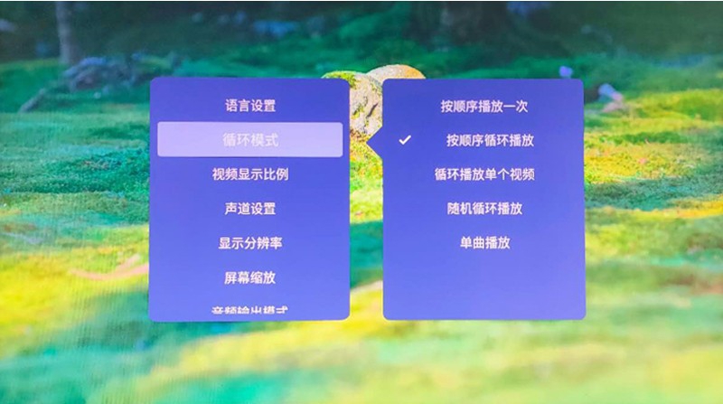 Loop Mode Settings: Sequential playback/Single loop playback/Random loop playback/Single track playback