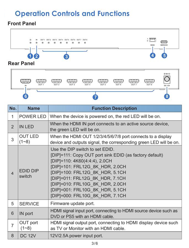 HDC-SPC18 1-IN 8-OUT 8K 1x8 HDMI-compatible Splitter 48Gbps High Performance HDMI-compatible Distributor