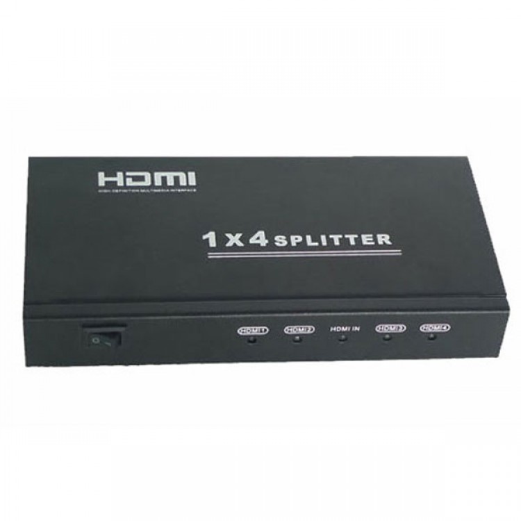 1 × 4 HDMI splitter distributes 1 HDMI source to 4 HDMI displays simultaneously. It offers HD video solution for super market ; shopping mall ; HDTV, STB, DVD , projector factory; data control center; information distribution; conference room presentation; education and training ; corporation show room ; home theater , etc.