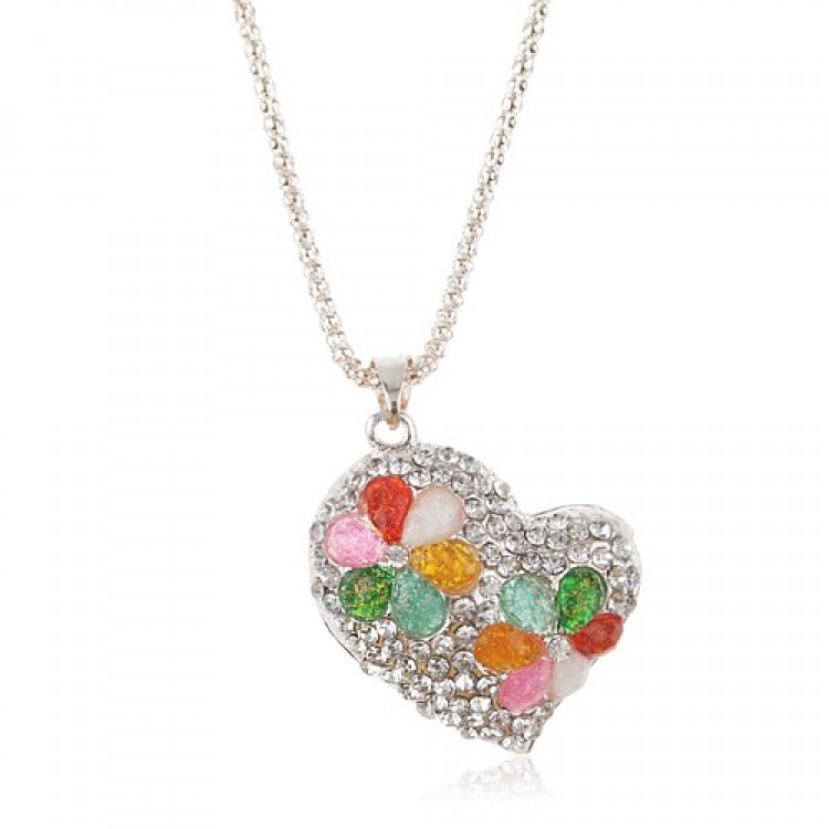 Heart Pendant Colorful Rhinestone Decor Necklace Jewelry
