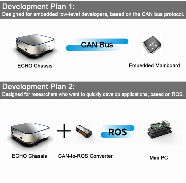 * ROS, GPS, Wi-Fi, 4G–5G, SLAM, CAN, LiDAR, ML and AI can be used with the robot chassis.